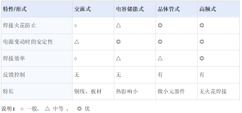 交流式、電容儲能式、晶體管式、高頻式焊接電源的不同及特長
