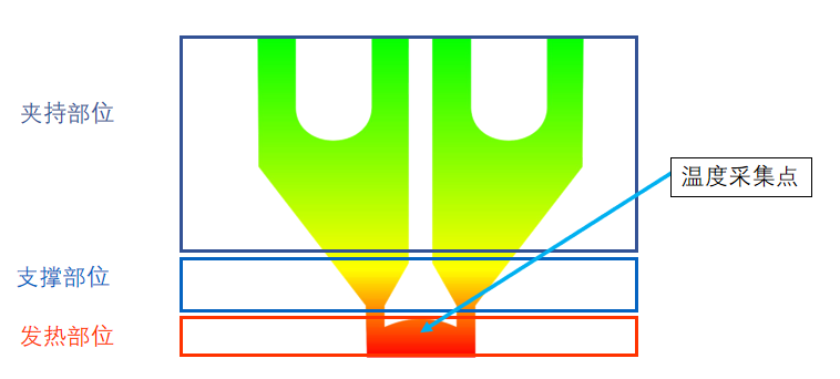 發(fā)熱部位:主要起發(fā)熱和壓接產品,并使錫層固化成型作用;