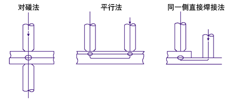 一般從焊接物的形狀去決定焊接電流的通電方法、大致可分為三類。另外對于不同的通電方法施加不同的壓力、據此選擇相對應的焊接頭。